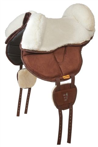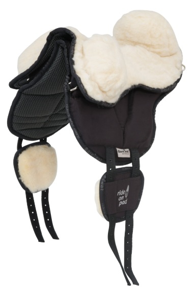 Das Barefoot Ride-On-Pad Kids Kombi Webfellsitz für die Kleinsten mit mehr Halt ( für größere Kinder kann der Sitz schnell entfernt werden. Das Reitpad hat eine V-Gurtung, die über nicht sichtbare Bänder den Druck über das gesamte Kissen verteilen soll. Auf eine Befestigungsmöglichkeit von Steigbügeln wurde verzichtet, da das Stehen im Bügel ebenfalls zu punktuellem Druck führt. Das Ride-On-Pad ist verschieden dick mit hochdichtem Schaum gepolstert und hat einen sehr guten Halt auf dem Pferderücken durch das Antirutsch (100% Polyester) - Unterseitenmaterial. Die Oberseite aus Mikrofaser gibt dem Reiter auch bei schnellen Bewegungen guten Griff. Die Gurtung wird stabilisiert durch Patches. Die Patches sind zusätzlich gepolstert und haben eine Unterseite aus echter Schafwolle und sind damit sehr fellfreundlich, dadurch soll die Gurtung nicht scheuern. Es wird ein englischer Gurt benötigt.