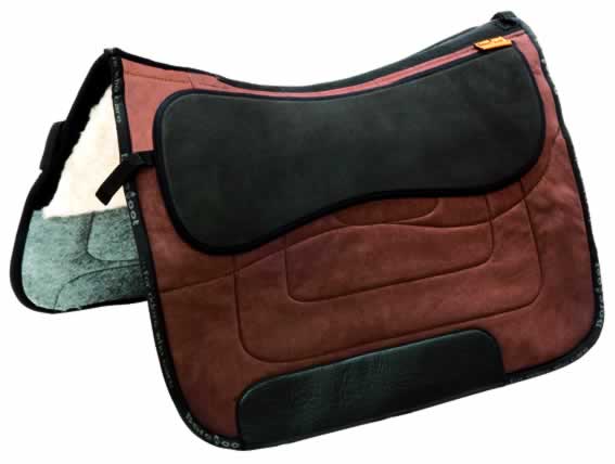 Die Spezial Sattelunterlagen haben eine dem Pferderücken und unseren Sätteln angepasste Oberlinie mit Widerristeinschnitt. Anatomisch geschnittene, herausnehmbare Einlagen aus PUR-Schaum ( 100 % Polyuretanschaum) rechts und links der Wirbelsäule entlang bilden einen dauerhaften Wirbelsäulenkanal und gewährleisten ideale Druckabsorbierung- und verteilung. Noch mehr Komfort und Dämpfung bieten die anatomischen Schafwoll-Unterseiten durch temperaturausgleichende und feuchtigkeitsaufnehmende Eigenschaften. Die Schafwoll-Unterseiten sind im Bereich der Wirbelsäule frei, um zusätzlich Entlastung und Freiraum für die Wirbelsäule und Dornfortsatzenden zu schaffen. Formstabile Wattierung innen. Die Oberseiten sind aus strapazierfähigem Baumwollsteppstoff (100% Baumwolle) mit rutschhemmender Moosgummiauflage. Alle Pads sind mit Klettstrippen zur Befestigung am Sattel ausgerüstet. Bei 30° im Wollwaschgang - am besten mit Wollwaschmittel – waschbar.