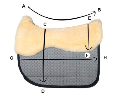 Hinweis: Größen können +/- 2 cm abweichen (je Seite Länge Breite !). Schrumpfung Sattelunterlagen beim Waschen max. 5% möglich.